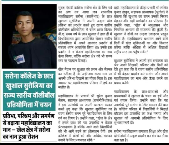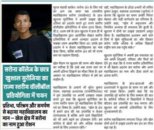 राज्य स्तरीय वॉलीबॉल प्रतियोगिता में चयन
