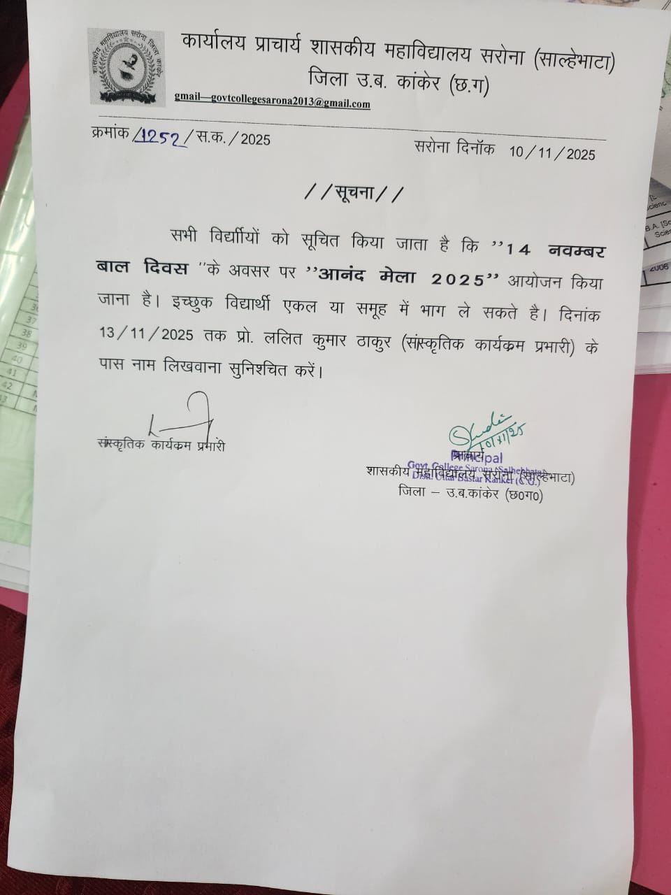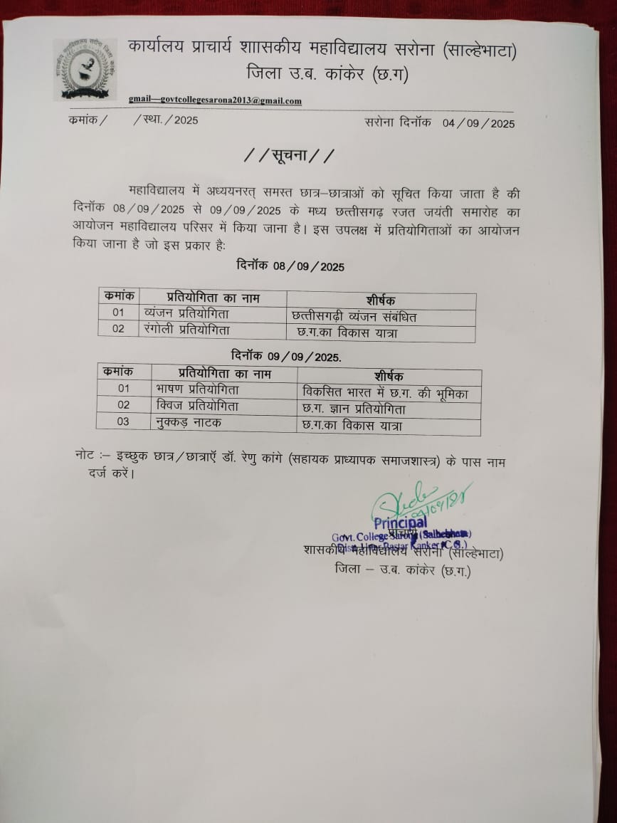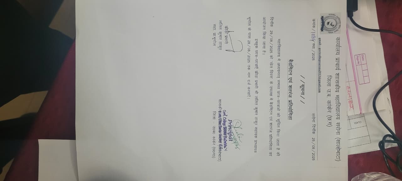 A very warm welcome to govt. College Sarona, We are committed to be a leader in the advance of human resource development and innovative technologies that will contribute to the nation’s wealth creation as well as inculcate values and ethics in our students.